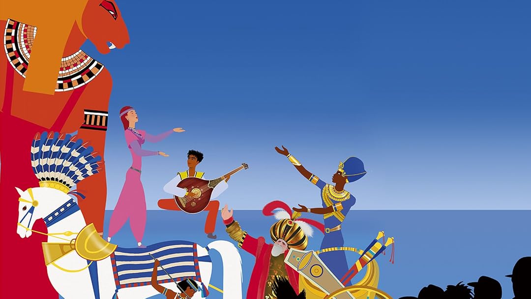 Dans une séquence du film d’animation Le Pharaon, le Sauvage et la Princesse, le réalisateur Michel Ocelot nous entraîne au cœur d’un imaginaire inspiré de l’Égypte antique. L’image évoque immédiatement les grandes civilisations du Nil : temples monumentaux, figures royales et présence constante du sacré. Le style graphique, très épuré, s’appuie sur des couleurs lumineuses et des formes stylisées qui rappellent les fresques et les motifs décoratifs égyptiens Les silhouettes, souvent de profil, adoptent une composition hiératique qui évoque l’esthétique des bas-reliefs antiques.